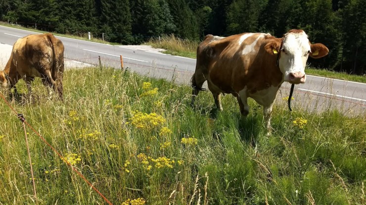 Dieser Tier sieht mit der Hungergrube hinter den Rippen und gebrochenem Schwanz sehr betroffen und beeinträchtigt,aus voller Hunger – trotz voller Weide und Auslauf!