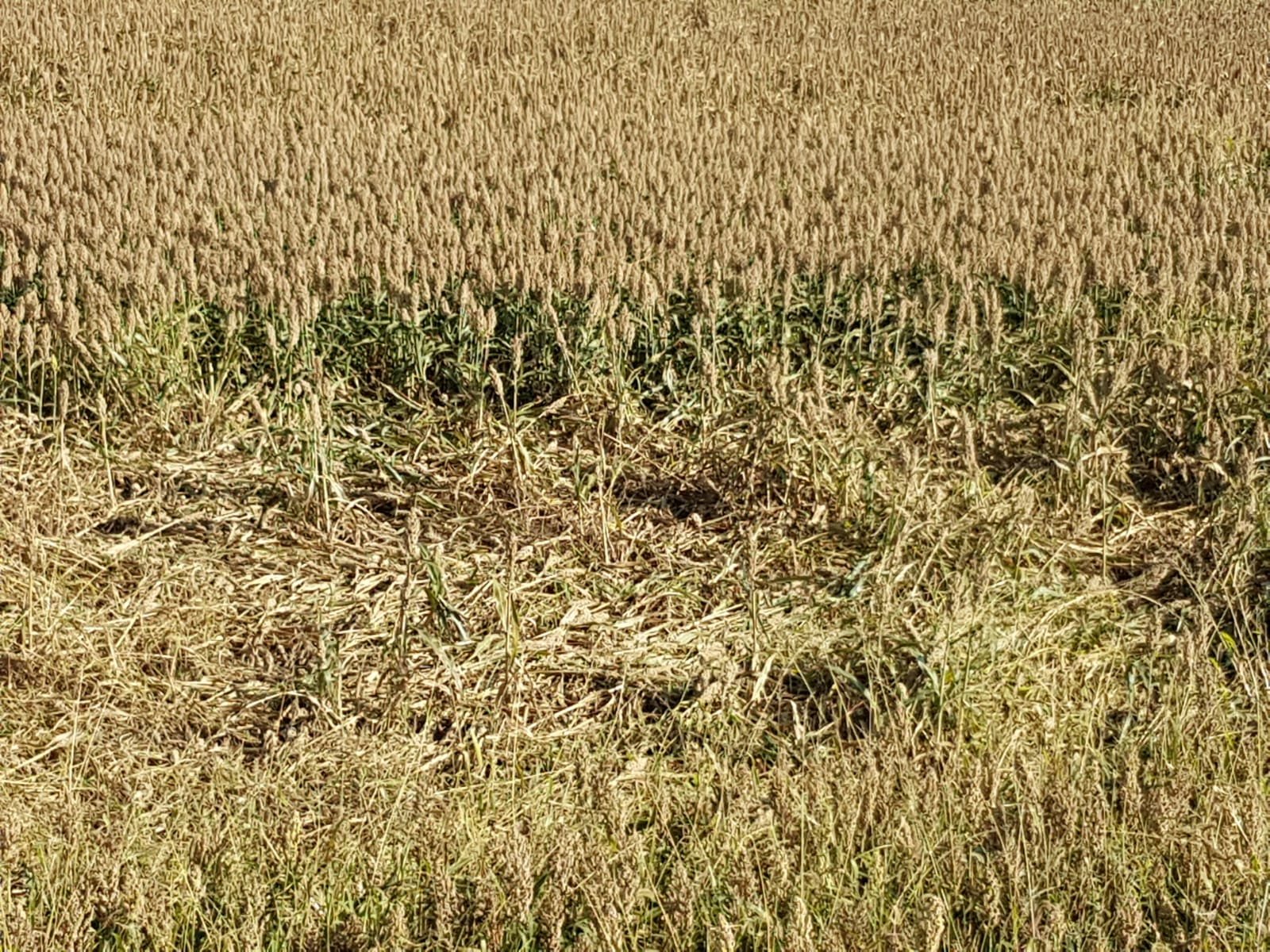 GÄNSEHALS-Maispflanzen fallen bereits früh und leicht bei der Feldkontrolle des Maises auf. Sie weisen auf den typischen Schädlingsbefall des MWB hin. Solange der Stängel wieder aufrecht steht, ist der Ertragsverlust bei Mais noch nicht dramatisch. Der GÄNSEHALS-Mais ist aber ein deutliches Warnsignal für den sich bereits ausbreitenden gefährlichen Maiswurzelbohrer. Es braucht nur einen Sturm im Sommer und die Maisfelder mit angefressenen Wurzeln fallen um. Die Pflanzen liegen kreuz und quer und ermöglichen kaum mehr eine Ernte, weder beim Dreschen noch beim Silieren. Der Lohndrusch wird bei liegendem Mais für beide Seiten schnell zu einem finanziellen Debakel.
