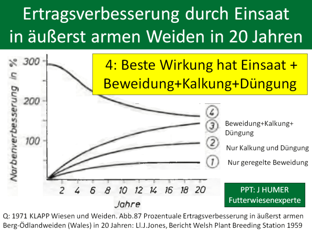 Eine wesentlche Erkenntnis ist dabei auch, dass mit diseser Kalkungsmethode der entscheidende erste Grünlandaufwuchs jedes Jahres eine sichere Ernte hinsichtlich Ertrag, Futterqualität und ebenso in der Futterstruktur bringt.