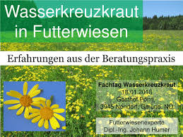Bei uns in NÖ gibts auch das Wasserkreuzkraut .Es ist auf feuchten Wiesen wo nicht gedüngt wird anzutreffen. Teilweise ist es so stark anzutreffen ,daß alles gelb ist. Auf meinen Wiesen ist es noch nicht so verbreiten, vielleicht auf drei Qudratmeter eine Pflanze.Ich habe heuer Heu gemacht, da es im trockenen Zustand nicht so giftig ist. Laut Experte Humer soll Düngen helfen .
