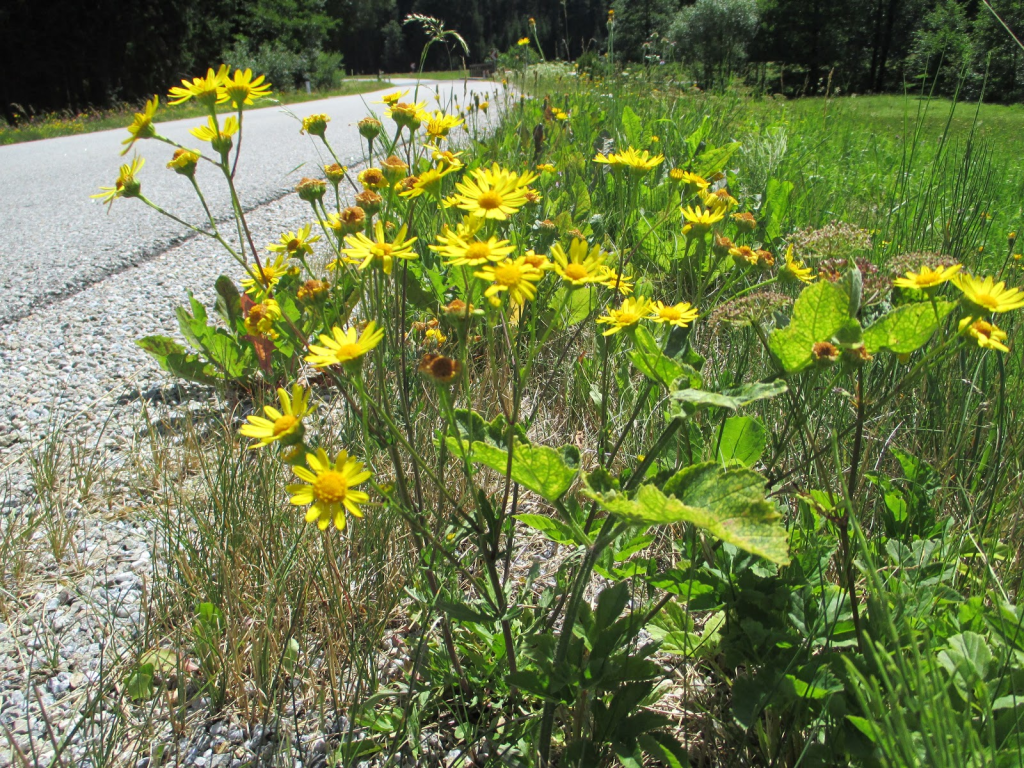 Der Bauer berichtete: Das Wasserkreuzkraut (WKK; Senecio aquaticus / Jacobaea aquatica) breite sich nun in erschreckenden Ausmaß nun auch bereits auf vielen gewöhnlich gedüngten Wiesen aus – so wie bereits ich es in Bayern bei einer Wiesenbegehung mit Vortrag 2015 erfuhr. Damit sind die wesentlichen Einkommens- und Futterquellen von Viehbetrieben hoch gefährdet. Das nicht heimische, aber über den Verkehr importierte, neophytische Schmalblättriges Kreuzkraut (Senecio inaequidens) wandert von den Rändern viel befahrener Straßen ebenso schon in Futterwiesen ein. Ja, es klettert dort sogar auf die kargen alpinen Felswände in Naturschutzgebieten und Almen und ln Südtirol werden dadurch sogar Almen zu Futternutzung geschlossen, erfuhr ich von diesem Bauern. Das Alpenkreuzkraut (Jacobaea alpina) nimmt ebenso auf Almen in erschreckenden Ausmaß im Hüttenbereich zu und dezimiert dort die nahen Futterflächen. Heute schaut es fast so, aus als ob diese massive Ausbreitung dieser Kreuzkräuter durch den Klimawandel und die neue EU-Umwelt-Förderlandschaft auf gewissen Standorten extrem begünstigt würden.