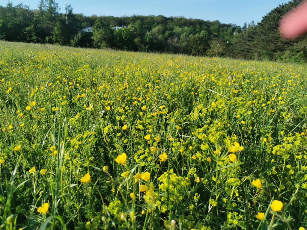 Wolfsmilch Ausbreitung in 1-Schnittwiese in Wien, Steinhof auf 1-mähdiger Lagerwiese neben Scharfem Hahnenfuß