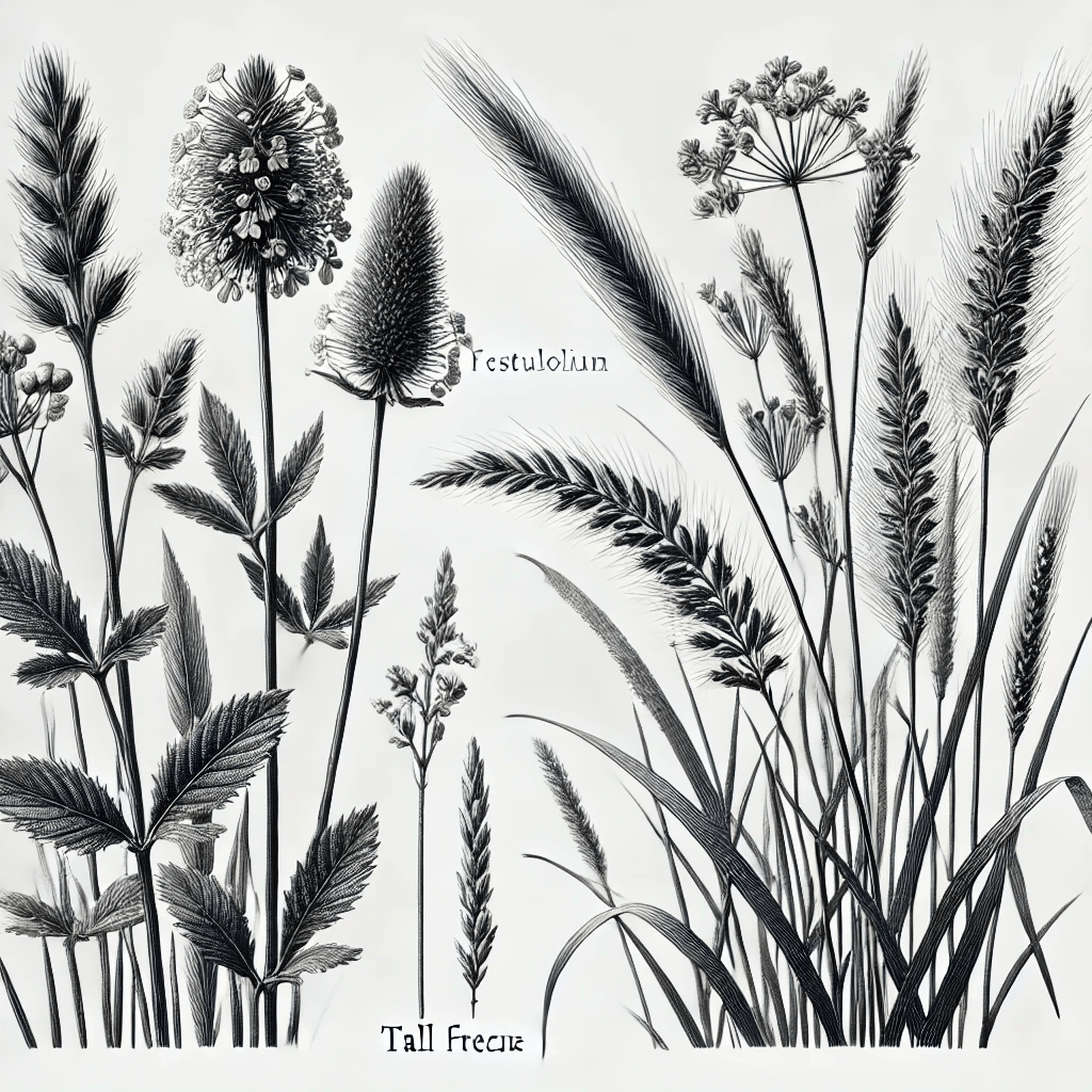 Die folgenden Bilder zeigen bloß, dass die KI derzeit keinen präzisen Vergleich von Festulolium und Rohrschwingel generieren kann, Arten, die wahrscheinlich noch nicht jeder kennt.